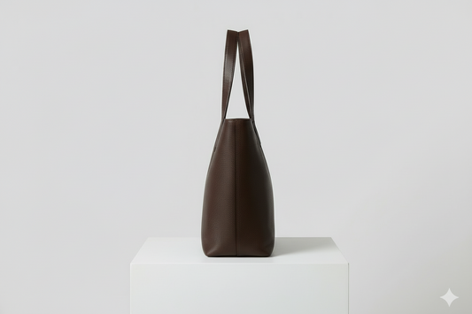 Grand Sac Cabas en Cuir Grainé Marron Foncé